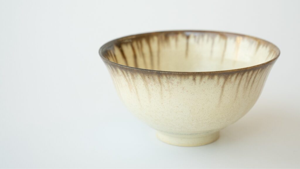 これは私が普段作っているご飯茶碗ですが、表面の白い部分が釉薬です。