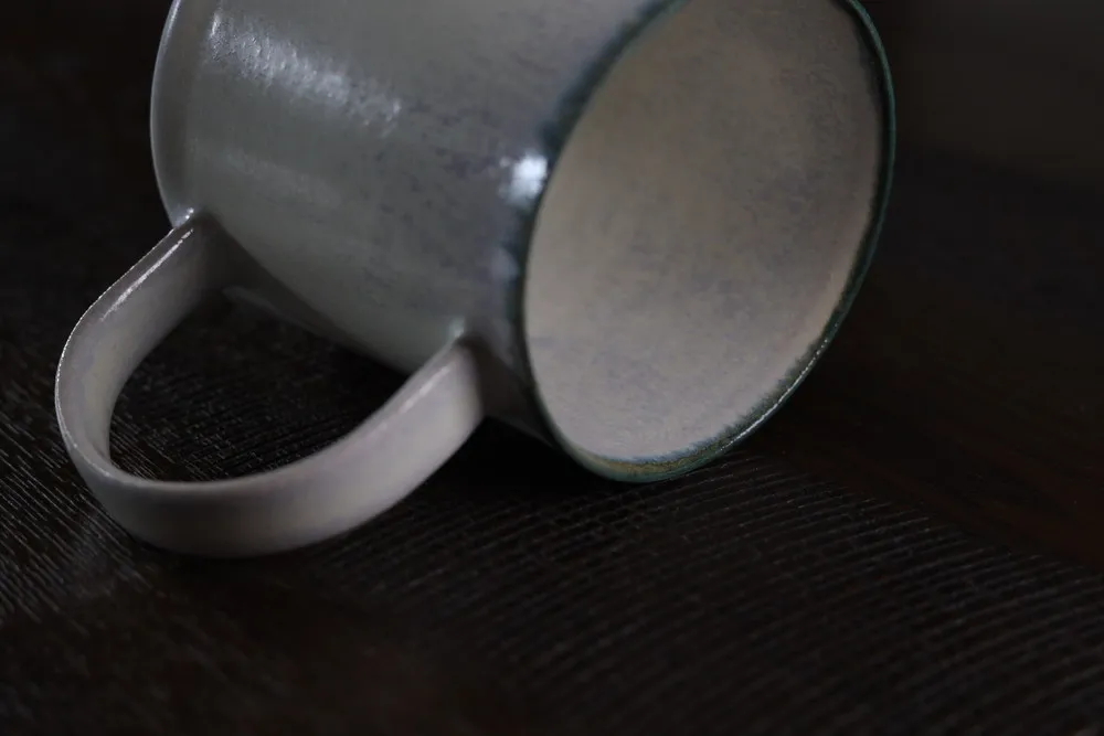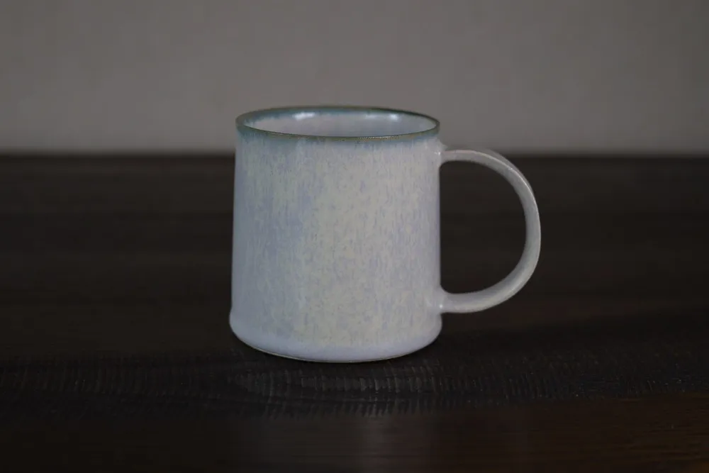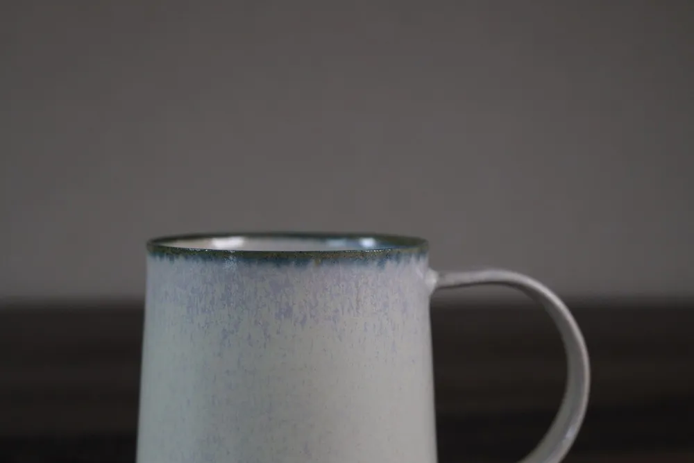 ストレートなフォルムと淡いブルーの釉薬が織りなす静かな佇まいは、どんな飲み物にもよく合い、日々のティータイムにやさしい彩りを添えてくれます。